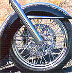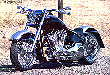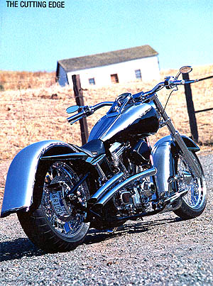Page 38 The Cutting Edge By Greg Friend George Pacheco, the owner of GP Designs in Livermore, California, was approached by one of his good friends, Lance Navas, about building him a cool custom bike. While George was always excited to start a new project, he was especially passionate about this one because, after collaboration on a few ideas, Lance gave George free range to do whatever he thought would be best for him and the bike. The bike's foundation was as open as the rest of the design, so George and his crew started the build with one of the first GP Deisngs frames. With a 2-inch stretch in the backbone and 33 degrees of rake in the neck, the frame would create a longer look while maintaining excellent low-speed control. Suspension for the custom came in the form of a Perse billet Wide Glide bolted to the steering neck with Perewitz lowers. In the back, Legend Air shocks were secured to swing arm and frame. George thought that the bike would look great with wheels that were more traditional, so he made a call to Billet Boys for a set of Akront spoke wheels. Between the legs of the frontend is an 18x3.5-inch wheel with a 130 Metzeler tire, and nestled within the swingarm is an 18x5.5-inch wheel wrapped in a Metzeler 180. As for brakes, a PM six-piston caliper squeezes a PM Seville rotor in the front, along with a similar setup in the back, except that the caliper is of the four-piston variety.